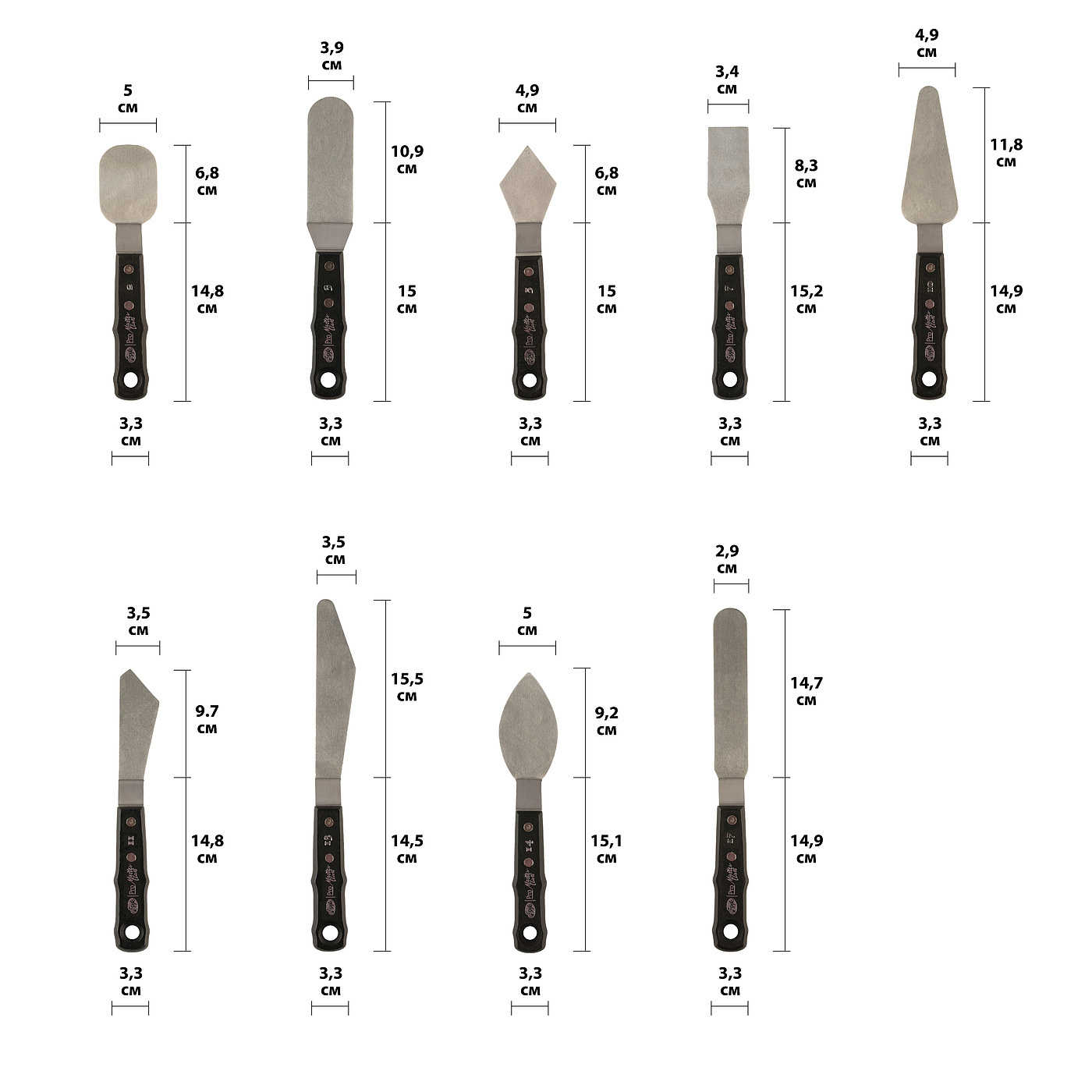 Cuțitele de paletă din seria Master Class sunt fabricate din oțel inoxidabil de înaltă calitate, mânerul ergonomic din lemn este fixat cu un manșon metalic. Seria este reprezentată de cuțite de paletă de diferite forme și dimensiuni. Spatulele sunt folosite pentru a crea o pictură, pentru a aplica vopseaua într-un strat uniform sau în linii de relief și sunt folosite și pentru a curăța paleta și pentru a îndepărta parțial vopseaua neuscată de pe pictură.